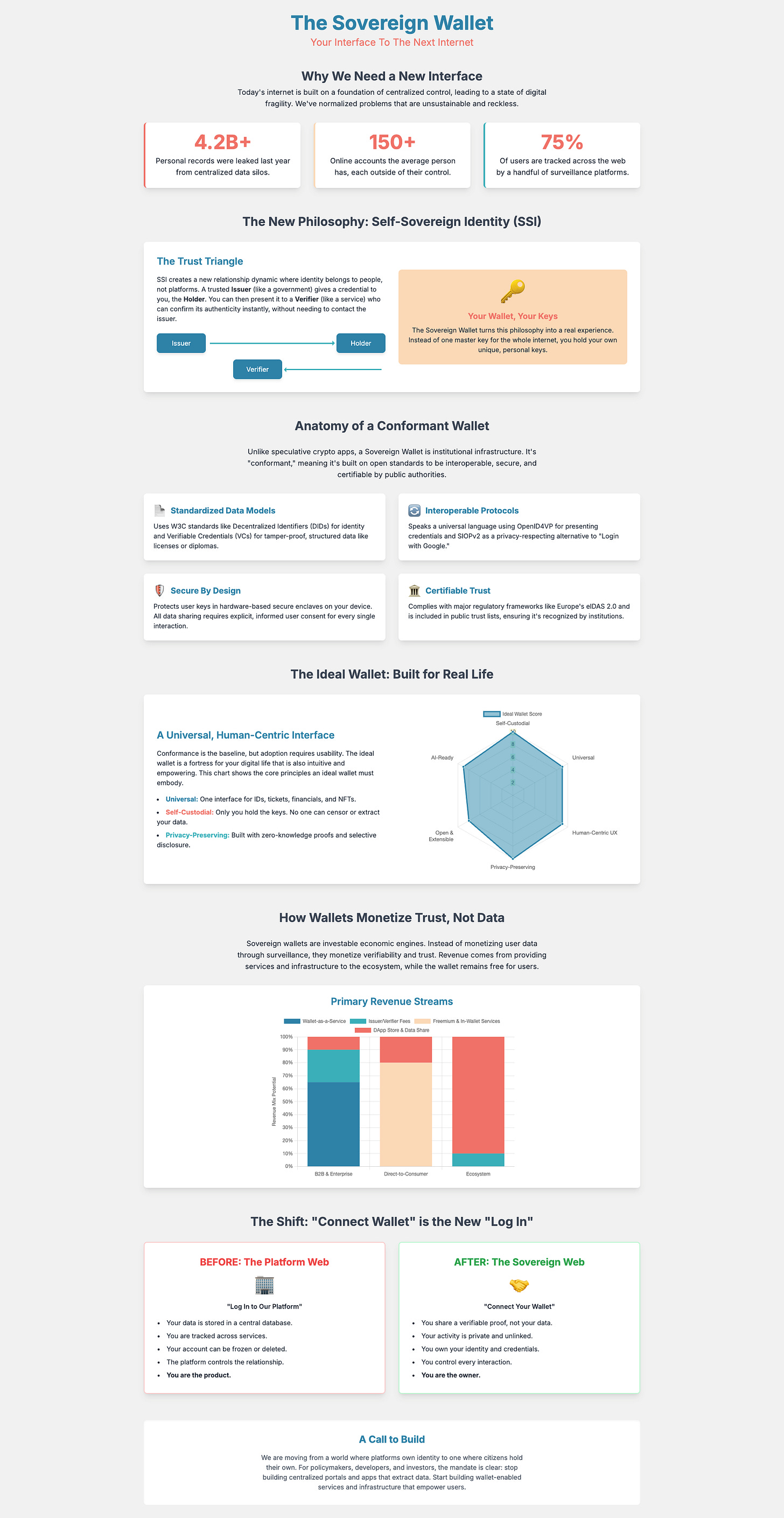 The sovereign wallet is how we move from surveillance capitalism without compromising usability or institutional trust. It’s the public interface to a private identity — the gateway to the next internet.